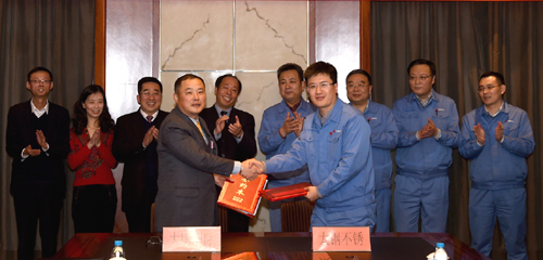 Subsequently, on behalf of the two sides respectively, STSS marketing director Shang Jiajun and Zhou Keming, signed the cooperation agreement. According to the agreement, the two sides will play their respective advantages, increase all-round communication and cooperation efforts in market development, customer service, deep processing of materials, new product development and other aspects, to enhance the service capacity of different materials to create complete industry supply chain of steel materials production, processing and distribution, to enhance service value, help improve market competitiveness of the end-user.